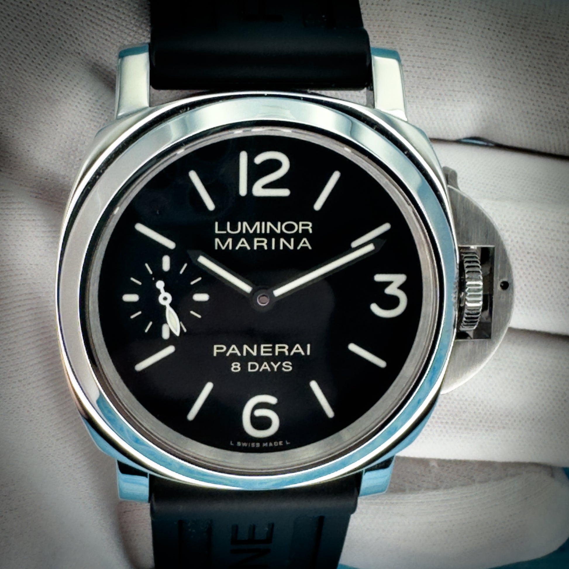 Strap: Includes Panerai black rubber strap and leather strap.