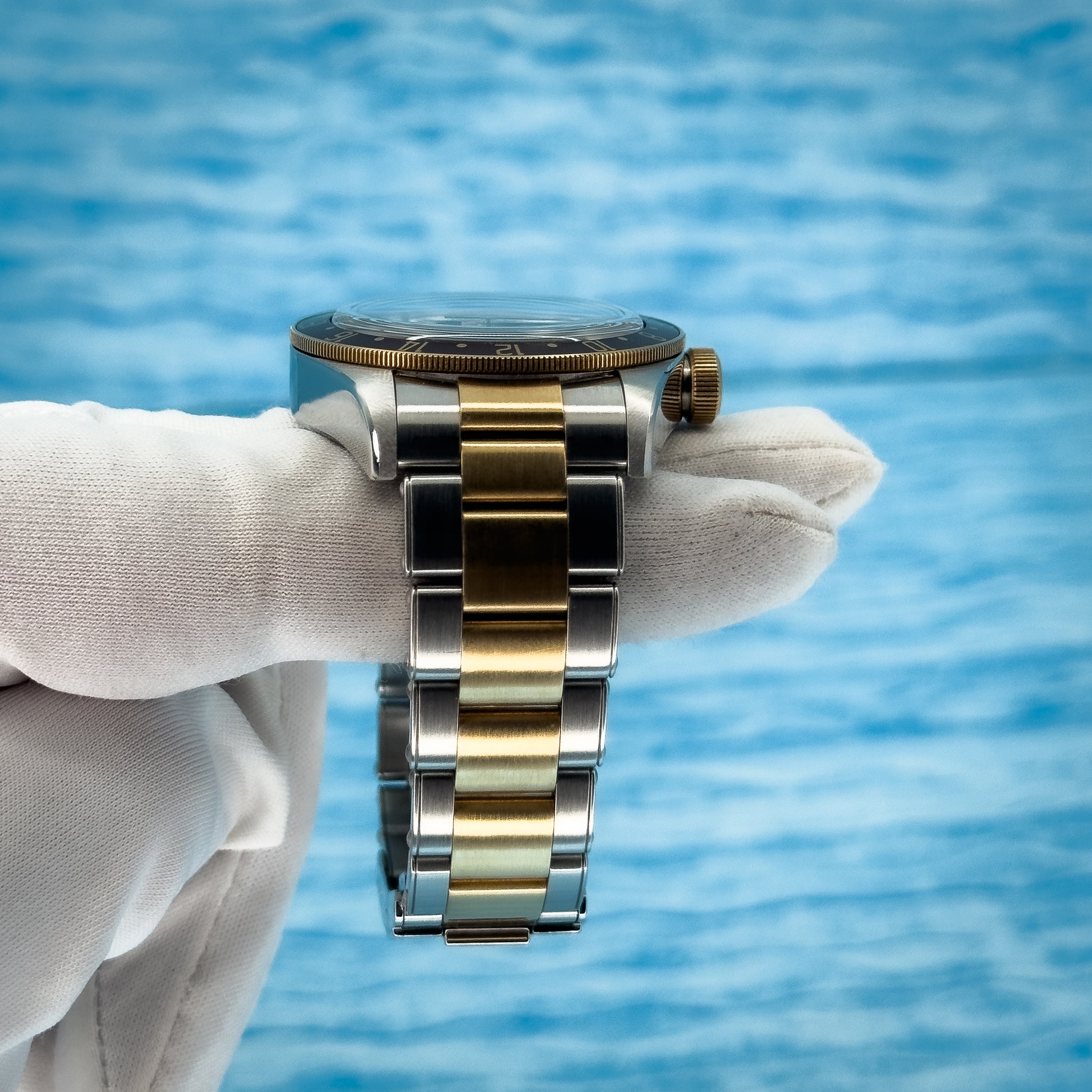 Bezel: Bi-directional black & brown aluminum GMT bezel